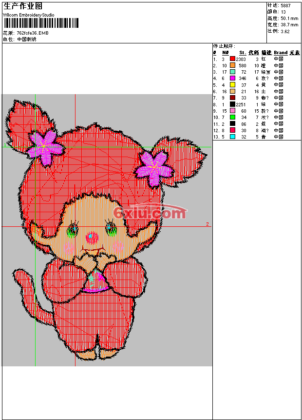 公仔 emb花版参数: 大小:105.00 KB / 尺寸:39*50[毫米] / 针数:5887针 / 线色:13 / 格式:emb / 版本:e4.2 版带文件需绣花软件方可打开,可配色打印导出各种格式或直接上机绣。如无绣花软件可下载1:1模拟效果图。 PNG图片信息:大小:0.1(MB) /图宽*高:147x190(像素) emb下载 1:1图下载 关闭 相关花版: 圆标 恐龙 universal 蜜蜂 LA 标 章 N+Y 标 NY 标 气球爱情 龙喜 MOUES 蝙蝠 蜘蛛侠 章标 字母 79字 球标 22字 KT猫 姓名贴 眼鼻子 熊头 蝴蝶结 兔子 南瓜 蝴蝶 国风熊猫 兔子 猫 熊 猴头 paul frank 大嘴猴 兔子 playboy