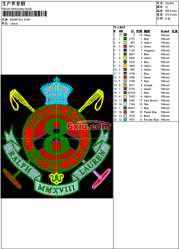 皇冠 球标 emb花版参数: 大小:5.74 MB / 尺寸:283*307[毫米] / 针数:102977针 / 线色:12 / 格式:emb / 版本:e2 版带文件需绣花软件方可打开,可配色打印导出各种格式或直接上机绣。如无绣花软件可下载1:1模拟效果图。 PNG图片信息:大小:1.4 (MB) /图宽*高:1070x1163(像素) emb下载 1:1图下载 关闭 相关花版: 章鱼 章鱼 鳄鱼 米奇 毛巾绣 珠片 水滴人 花样珠片珠子 帽子 珠片 武士骑马 标 牛 仙人掌 猫 毛巾绣 珠片花 polo 保罗 玫瑰花 字母 鱼 海豚 印第安人 水母 荷花 ny 标 logo 阿迪 adidas 抽像线条 蝙蝠 章标 鬼头 h 毛巾绣 狗滑板 抽像方形 ny 标 logo n立体字母 棒球员