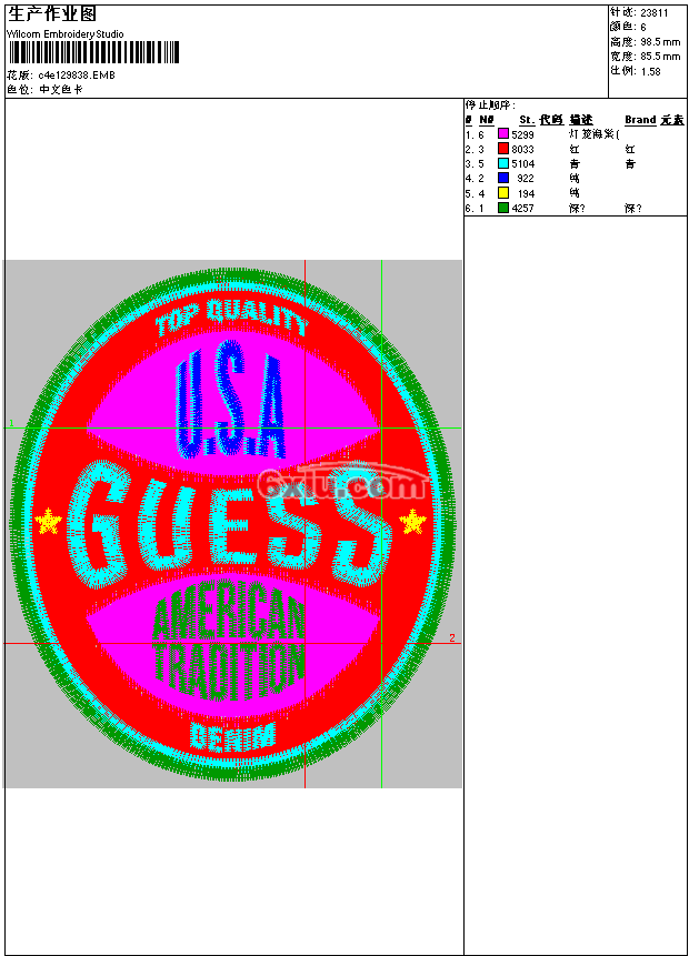 guess标 emb花版参数: 大小:229.00 KB / 尺寸:86*99[毫米] / 针数:23861针 / 线色:6 / 格式:emb / 版本:e1.5 版带文件需绣花软件方可打开,可配色打印导出各种格式或直接上机绣。如无绣花软件可下载1:1模拟效果图。 PNG图片信息:大小:0.2 (MB) /图宽*高:324x373(像素) emb下载 1:1图下载 关闭 相关花版: 鹰标 滑雪标 字母标 圆标 章标 骷髅标 豹标 豹标 马头 卡通标 蛇标 鹰标 章标 圆标 中国新高度标 豹标 木头 史诺比 小鬼 小马宝莉 标 字母D 水滴人 狗 柯基 狗柯基 花朵 花朵 男人 canada 枫叶 加拿大 小黄人
