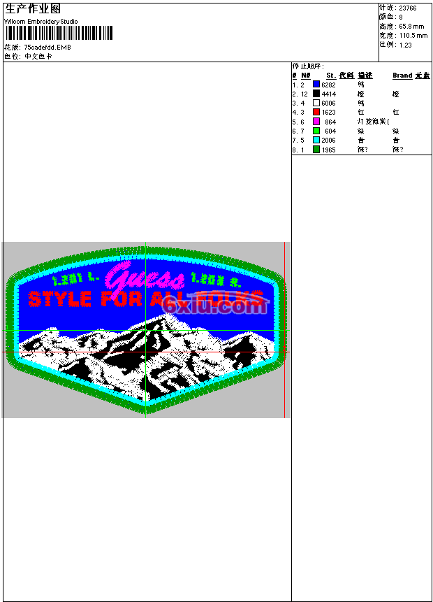 雪山 emb花版参数: 大小:377.00 KB / 尺寸:110*66[毫米] / 针数:23824针 / 线色:8 / 格式:emb / 版本:e1.5 版带文件需绣花软件方可打开,可配色打印导出各种格式或直接上机绣。如无绣花软件可下载1:1模拟效果图。 PNG图片信息:大小:0.2 (MB) /图宽*高:418x249(像素) emb下载 1:1图下载 关闭 相关花版: 保安标 guess标 鹰标 滑雪标 字母标 圆标 章标 骷髅标 豹标 豹标 马头 卡通标 蛇标 鹰标 章标 圆标 中国新高度标 豹标 木头 史诺比 小鬼 小马宝莉 标 字母D 水滴人 狗 柯基 狗柯基 花朵 花朵 男人