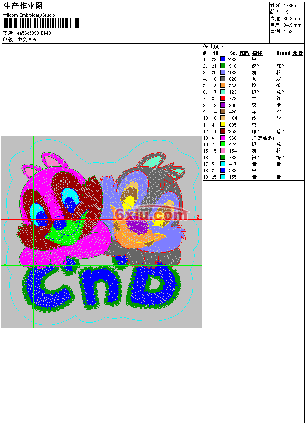 兔卡通 emb花版参数: 大小:133.50 KB / 尺寸:85*81[毫米] / 针数:18143针 / 线色:19 / 格式:emb / 版本:e1.5 版带文件需绣花软件方可打开,可配色打印导出各种格式或直接上机绣。如无绣花软件可下载1:1模拟效果图。 PNG图片信息:大小:0.2 (MB) /图宽*高:322x306(像素) emb下载 1:1图下载 关闭 相关花版: 地球标 翅膀标 禾穗标 圆标 雪山 保安标 guess标 鹰标 滑雪标 字母标 圆标 章标 骷髅标 豹标 豹标 马头 卡通标 蛇标 鹰标 章标 圆标 中国新高度标 豹标 木头 史诺比 小鬼 小马宝莉 标 字母D 水滴人