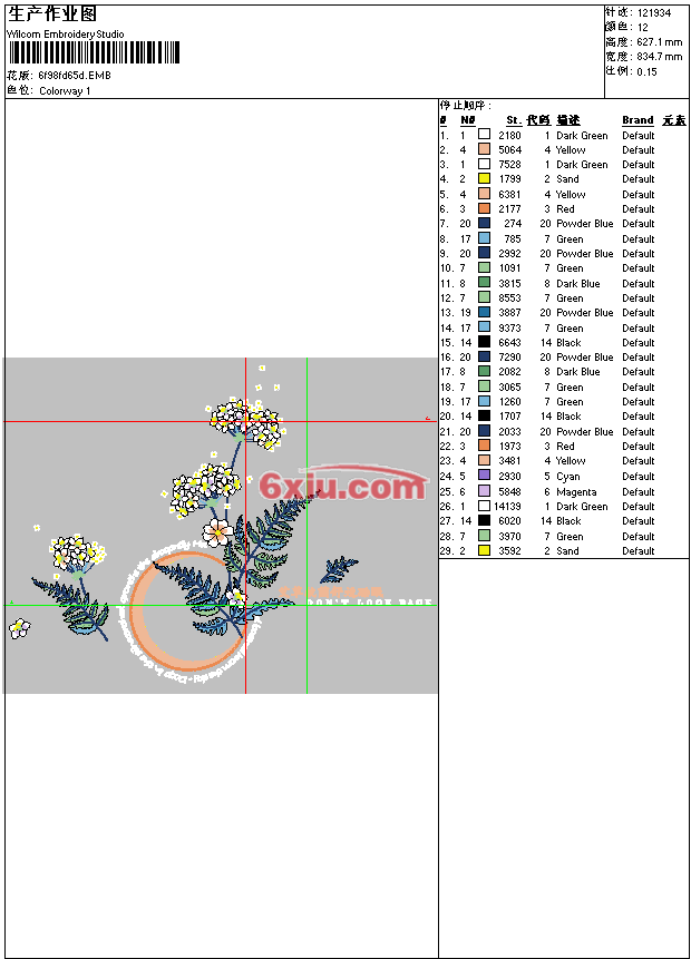 家纺四件套2 emb花版参数: 大小:1011.50 KB / 尺寸:835*627[毫米] / 针数:122321针 / 线色:12 / 格式:emb / 版本:9 版带文件需绣花软件方可打开,可配色打印导出各种格式或直接上机绣。如无绣花软件可下载1:1模拟效果图。 PNG图片信息:大小:2.5 (MB) /图宽*高:3158x2373(像素) emb下载 1:1图下载 收藏本图 关闭 相关花版: 家纺被套 四件套绣花 枕头绣花 安全帽 虎头K 武士章 球队标 马车 斗牛犬 唐老鸭 鱼标 章标 猫头 鹰标 高山 虎章 车标 章标 蛇 山标 虎标 骷髅标 心标 山标 狼标 兔卡通 地球标 翅膀标 禾穗标 圆标