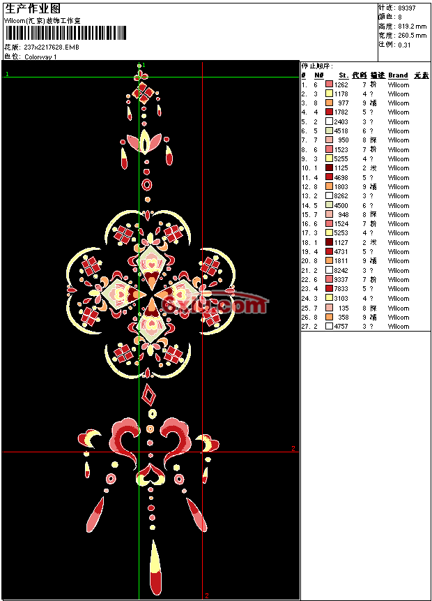 汉服 璎珞 emb花版参数: 大小:546.00 KB / 尺寸:260*819[毫米] / 针数:89397针 / 线色:8 / 格式:emb / 版本:e4.2 版带文件需绣花软件方可打开,可配色打印导出各种格式或直接上机绣。如无绣花软件可下载1:1模拟效果图。 PNG图片信息:大小:1.1 (MB) /图宽*高:986x3099(像素) emb下载 1:1图下载 收藏本图 关闭 相关花版: 汉服 璎珞 汉服 领子 袖口 小花 汉服 莲花 心形字 小狗 兔子 小花 花 心形 跳舞女孩 家纺四件套3 家纺四件套2 家纺被套 四件套绣花 枕头绣花 安全帽 虎头K 武士章 球队标 马车 斗牛犬 唐老鸭 鱼标 章标 猫头 鹰标 高山 虎章 车标 章标 蛇