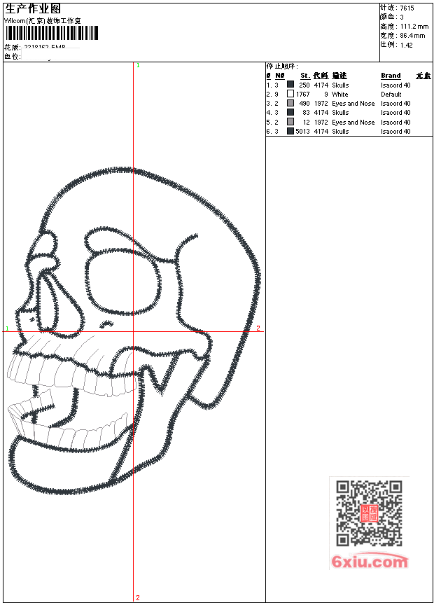 骷髅头 EMB花版参数: 大小:93.50 KB / 尺寸:86*111[毫米] / 针数:7615针 / 线色:3 / 格式:EMB / 版本:e4.2 版带文件需绣花软件方可打开,可配色打印导出各种格式或直接上机绣。如无绣花软件可下载1:1模拟效果图。 PNG图片信息:大小:0.1(MB) /图宽*高:327x421(像素) EMB下载 1:1图下载 关闭 相关花版: 拉布布 小梅花鹿 拉布布贴布 小熊 love 小熊 小熊贴布 小象贴布 小熊 刺绣名字贴,米奇,幼儿园 卡通标熊 叮当猫 叮当猫 家纺-窗帘-匹绣-墙布-欧花 家纺-窗帘-欧花-匹绣 家纺-窗帘-欧花-匹绣 家纺-窗帘-欧花-匹绣 家纺-窗帘-欧花-匹绣 家纺-窗帘-欧花-匹绣 家纺-匹绣-梅花 家纺-欧花-匹绣 家纺-花-匹绣 窗帘-欧花 窗帘-欧花 窗帘-欧花 窗帘-欧花 窗帘-欧花 窗帘-欧花 超级牡丹花 炸鸡薯条章