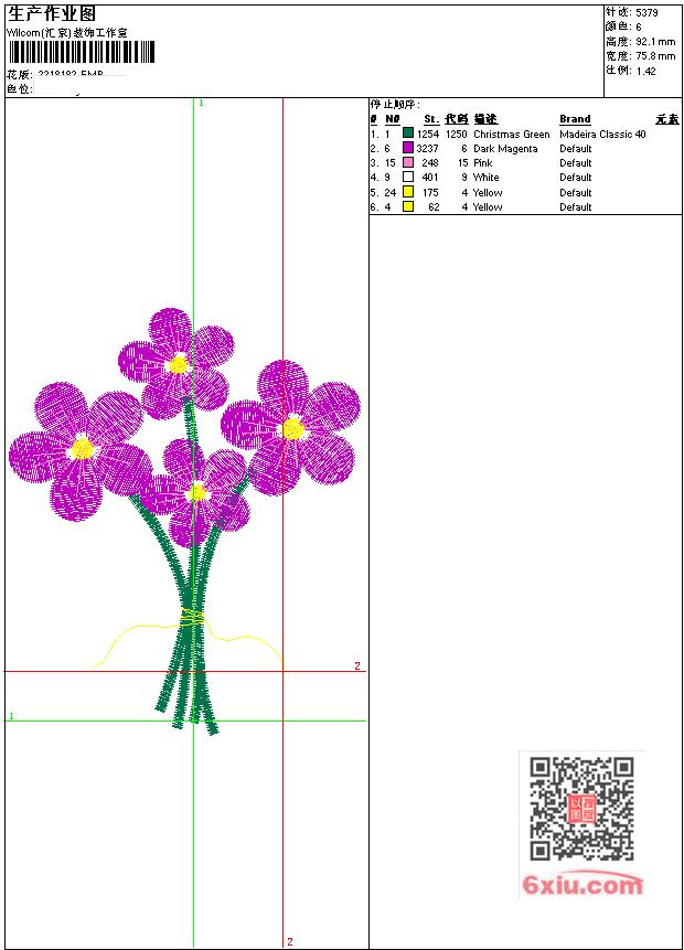 - EMB花版参数: 大小:75.50 KB / 尺寸:76*92[毫米] / 针数:5379针 / 线色:6 / 格式:EMB / 版本:e4.2