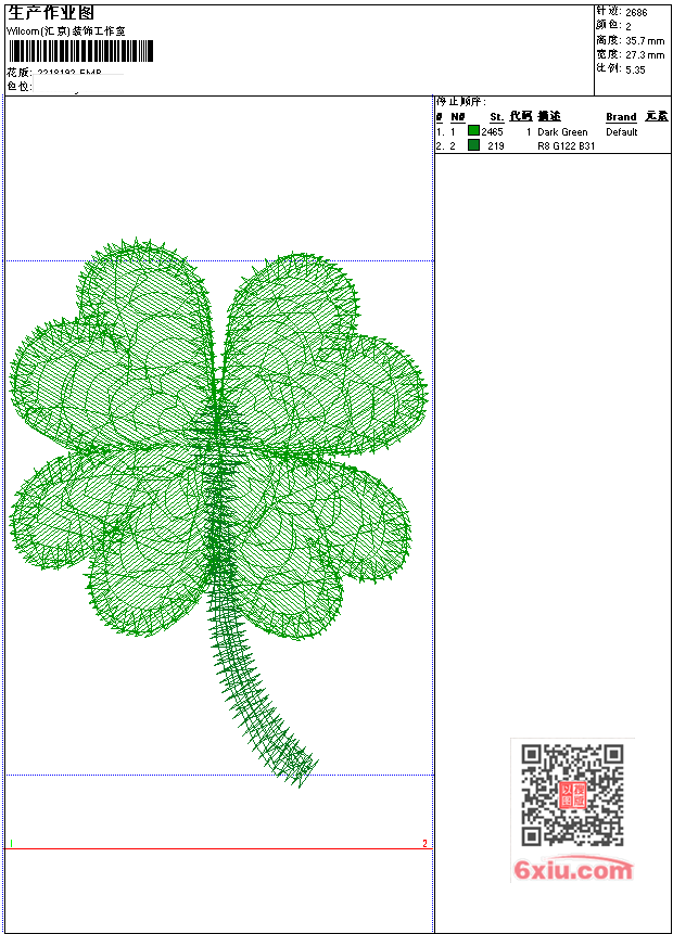 - EMB花版参数: 大小:60.00 KB / 尺寸:27*36[毫米] / 针数:2686针 / 线色:2 / 格式:EMB / 版本:e4.2