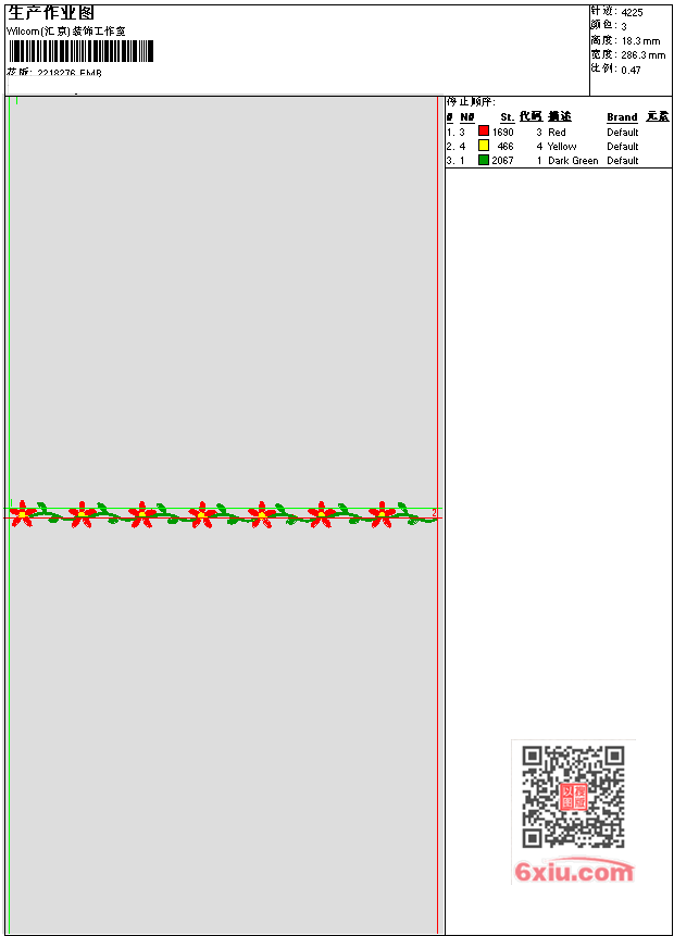 花朵小花缘边 枝条花藤汉服装饰边 EMB花版参数: 大小:44.50 KB / 尺寸:286*18[毫米] / 针数:4225针 / 线色:3 / 格式:EMB / 版本:e4.2 版带文件需绣花软件方可打开,可配色打印导出各种格式或直接上机绣。如无绣花软件可下载1:1模拟效果图。 PNG图片信息:大小:0.1(MB) /图宽*高:1084x70(像素) EMB下载 1:1图下载 收藏本图 关闭 相关花版: 裙头小花 票带 栀子花瓣 栀子花瓣 小飘带 花纹 祥云 梅花树枝 彼岸花背景大 彼岸花A 小八 小猫轮廓 小熊 小猫 LOVE气球 星星笑脸 四叶草 小鹿 小野花 贴布玉桂狗 骷髅头 拉布布 小梅花鹿 拉布布贴布 小熊 love 小熊 小熊贴布 小象贴布 小熊