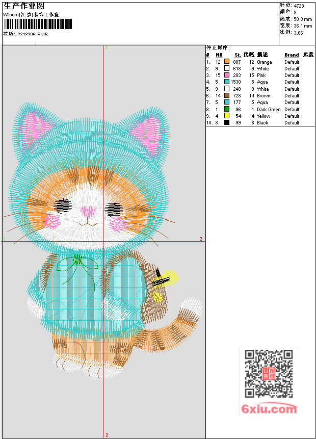猫卡通 EMB花版参数: 大小:78.50 KB / 尺寸:36*50[毫米] / 针数:4723针 / 线色:8 / 格式:EMB / 版本:e4.2 版带文件需绣花软件方可打开,可配色打印导出各种格式或直接上机绣。如无绣花软件可下载1:1模拟效果图。 PNG图片信息:大小:0.1(MB) /图宽*高:137x191(像素) EMB下载 1:1图下载 关闭 相关花版: 拉布布(贴布绣) 拉布布(贴布绣) 海绵宝宝 可爱熊熊章仔 小人抽象 脸 怪兽线条 怪兽 卡通 花朵小花缘边 枝条花藤汉服装饰边 裙头小花 票带 栀子花瓣 栀子花瓣 小飘带 花纹 祥云 梅花树枝 彼岸花背景大 彼岸花A 小八 小猫轮廓 小熊 小猫 LOVE气球 星星笑脸 四叶草 小鹿 小野花 贴布玉桂狗 骷髅头 拉布布