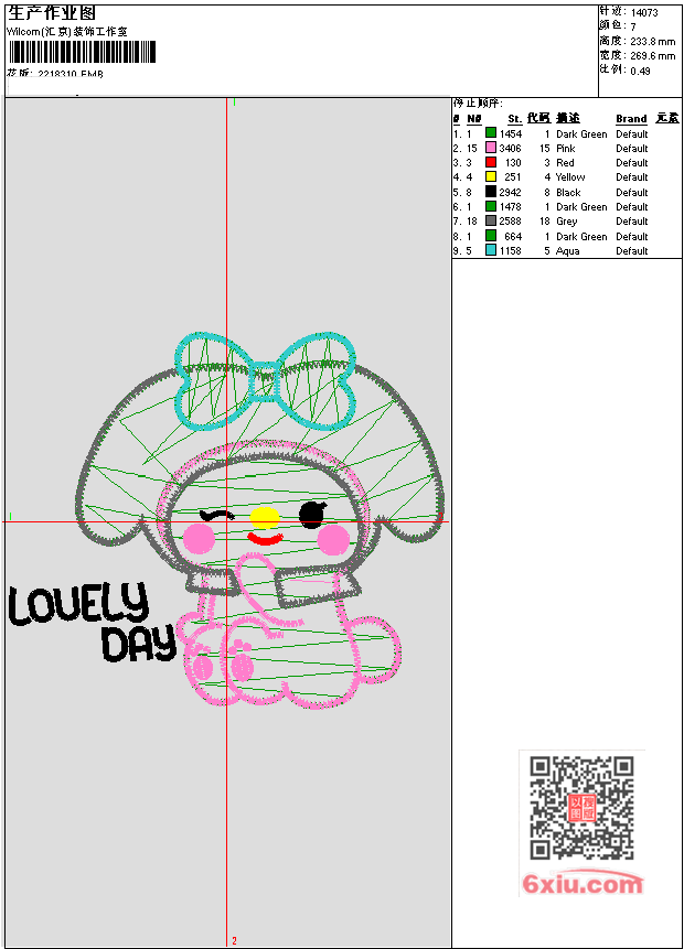 美乐蒂(贴布绣) EMB花版参数: 大小:150.00 KB / 尺寸:270*234[毫米] / 针数:14073针 / 线色:7 / 格式:EMB / 版本:e4.2 版带文件需绣花软件方可打开,可配色打印导出各种格式或直接上机绣。如无绣花软件可下载1:1模拟效果图。 PNG图片信息:大小:0.5(MB) /图宽*高:1020x885(像素) EMB下载 1:1图下载 关闭 相关花版: 美乐蒂(贴布绣) 狗(贴布绣) 狗(贴布绣) 猫卡通 拉布布(贴布绣) 拉布布(贴布绣) 海绵宝宝 可爱熊熊章仔 小人抽象 脸 怪兽线条 怪兽 卡通 花朵小花缘边 枝条花藤汉服装饰边 裙头小花 票带 栀子花瓣 栀子花瓣 小飘带 花纹 祥云 梅花树枝 彼岸花背景大 彼岸花A 小八 小猫轮廓 小熊 小猫 LOVE气球 星星笑脸 四叶草 小鹿