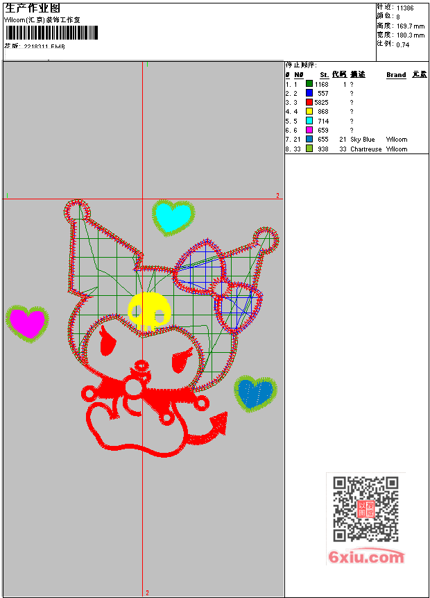 库洛米 EMB花版参数: 大小:108.50 KB / 尺寸:180*170[毫米] / 针数:11386针 / 线色:8 / 格式:EMB / 版本:e4.2 版带文件需绣花软件方可打开,可配色打印导出各种格式或直接上机绣。如无绣花软件可下载1:1模拟效果图。 PNG图片信息:大小:0.3(MB) /图宽*高:683x642(像素) EMB下载 1:1图下载 关闭 相关花版: 美乐蒂(贴布绣) 美乐蒂(贴布绣) 狗(贴布绣) 狗(贴布绣) 猫卡通 拉布布(贴布绣) 拉布布(贴布绣) 海绵宝宝 可爱熊熊章仔 小人抽象 脸 怪兽线条 怪兽 卡通 花朵小花缘边 枝条花藤汉服装饰边 裙头小花 票带 栀子花瓣 栀子花瓣 小飘带 花纹 祥云 梅花树枝 彼岸花背景大 彼岸花A 小八 小猫轮廓 小熊 小猫 LOVE气球 星星笑脸 四叶草