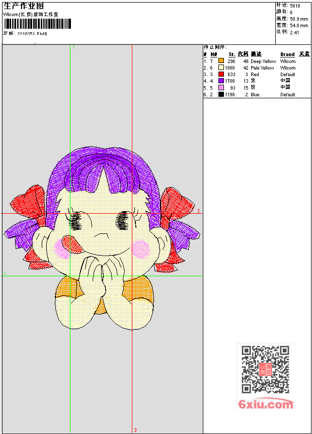 小女孩 EMB花版参数: 大小:104.00 KB / 尺寸:55*51[毫米] / 针数:5818针 / 线色:6 / 格式:EMB / 版本:e4.2 版带文件需绣花软件方可打开,可配色打印导出各种格式或直接上机绣。如无绣花软件可下载1:1模拟效果图。 PNG图片信息:大小:0.1(MB) /图宽*高:208x193(像素) EMB下载 1:1图下载 收藏本图 关闭 相关花版: 洛杉矶湖人队 帽子 蝴蝶 蜜蜂 五角星臂章 宝剑臂章 超级玛利 章仔 兔子 五角星 熊猫 花朵 库洛米 美乐蒂(贴布绣) 美乐蒂(贴布绣) 狗(贴布绣) 狗(贴布绣) 猫卡通 拉布布(贴布绣) 拉布布(贴布绣) 海绵宝宝 可爱熊熊章仔 小人抽象 脸 怪兽线条 怪兽 卡通 花朵小花缘边 枝条花藤汉服装饰边 裙头小花 票带 栀子花瓣 栀子花瓣 小飘带