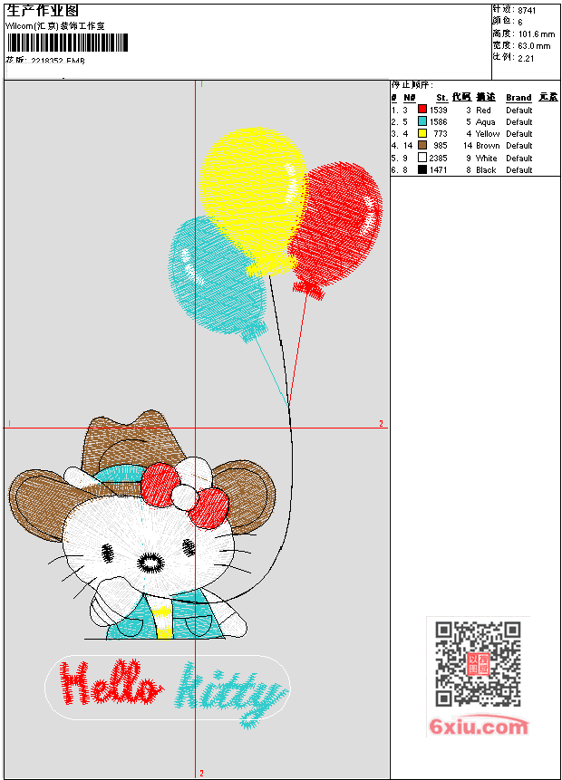 KT猫 气球 EMB花版参数: 大小:96.50 KB / 尺寸:63*102[毫米] / 针数:8741针 / 线色:6 / 格式:EMB / 版本:e4.2 版带文件需绣花软件方可打开,可配色打印导出各种格式或直接上机绣。如无绣花软件可下载1:1模拟效果图。 PNG图片信息:大小:0.1(MB) /图宽*高:239x385(像素) EMB下载 1:1图下载 关闭 相关花版: 小女孩 洛杉矶湖人队 帽子 蝴蝶 蜜蜂 五角星臂章 宝剑臂章 超级玛利 章仔 兔子 五角星 熊猫 花朵 库洛米 美乐蒂(贴布绣) 美乐蒂(贴布绣) 狗(贴布绣) 狗(贴布绣) 猫卡通 拉布布(贴布绣) 拉布布(贴布绣) 海绵宝宝 可爱熊熊章仔 小人抽象 脸 怪兽线条 怪兽 卡通 花朵小花缘边 枝条花藤汉服装饰边 裙头小花 票带 栀子花瓣 栀子花瓣