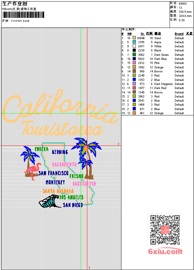 度假风景 EMB花版参数: 大小:607.50 KB / 尺寸:325*330[毫米] / 针数:69003针 / 线色:13 / 格式:EMB / 版本:e4.2 版带文件需绣花软件方可打开,可配色打印导出各种格式或直接上机绣。如无绣花软件可下载1:1模拟效果图。 PNG图片信息:大小:0.8(MB) /图宽*高:1228x1250(像素) EMB下载 1:1图下载 关闭 相关花版: 商标狮 小狗 史努比 松鼠 新中式女装领子 女装绣花带亮片 goodluck 熊 熊大 KT猫 NEXRT generation KT猫 气球 小女孩 洛杉矶湖人队 帽子 蝴蝶 蜜蜂 五角星臂章 宝剑臂章 超级玛利 章仔 兔子 五角星 熊猫 花朵 库洛米 美乐蒂(贴布绣) 美乐蒂(贴布绣) 狗(贴布绣) 狗(贴布绣) 猫卡通 拉布布(贴布绣)