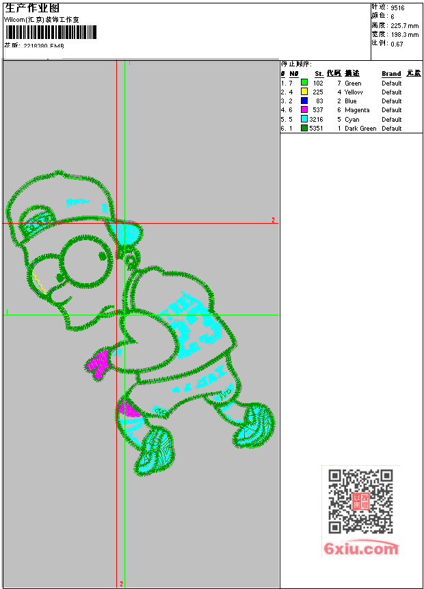 卡通 EMB花版参数: 大小:133.00 KB / 尺寸:198*226[毫米] / 针数:9516针 / 线色:6 / 格式:EMB / 版本:e4.2 版带文件需绣花软件方可打开,可配色打印导出各种格式或直接上机绣。如无绣花软件可下载1:1模拟效果图。 PNG图片信息:大小:0.3(MB) /图宽*高:751x854(像素) EMB下载 1:1图下载 关闭 相关花版: 女孩书包 女孩 女孩 女孩 女孩 金刚 猩猩 章 娃娃面 度假风景 商标狮 小狗 史努比 松鼠 新中式女装领子 女装绣花带亮片 goodluck 熊 熊大 KT猫 NEXRT generation KT猫 气球 小女孩 洛杉矶湖人队 帽子 蝴蝶 蜜蜂 五角星臂章 宝剑臂章 超级玛利 章仔 兔子 五角星 熊猫