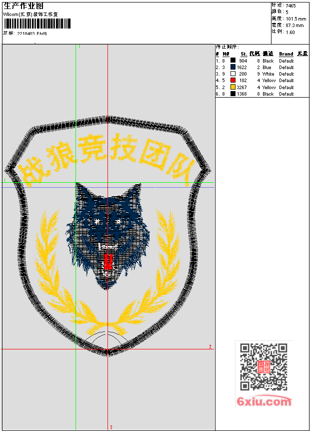 战狼臂章 EMB花版参数: 大小:99.50 KB / 尺寸:87*102[毫米] / 针数:7465针 / 线色:5 / 格式:EMB / 版本:e4.2 版带文件需绣花软件方可打开,可配色打印导出各种格式或直接上机绣。如无绣花软件可下载1:1模拟效果图。 PNG图片信息:大小:0.1(MB) /图宽*高:331x384(像素) EMB下载 1:1图下载 收藏本图 关闭 相关花版: 章仔 鹰 哪吒 小花 女孩 贴布 鸟 卡通 女孩书包 女孩 女孩 女孩 女孩 金刚 猩猩 章 娃娃面 度假风景 商标狮 小狗 史努比 松鼠 新中式女装领子 女装绣花带亮片 goodluck 熊 熊大 KT猫 NEXRT generation KT猫 气球 小女孩 洛杉矶湖人队 帽子 蝴蝶 蜜蜂