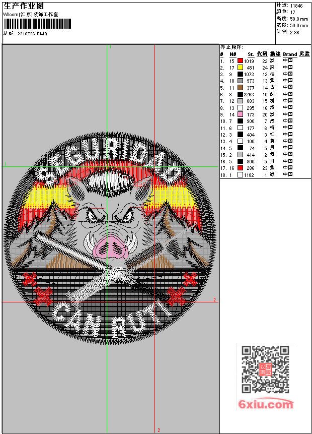 猪头标 EMB花版参数: 大小:126.50 KB / 尺寸:50*50[毫米] / 针数:11846针 / 线色:17 / 格式:EMB / 版本:e4.2 版带文件需绣花软件方可打开,可配色打印导出各种格式或直接上机绣。如无绣花软件可下载1:1模拟效果图。 PNG图片信息:大小:0.1(MB) /图宽*高:190x190(像素) EMB下载 1:1图下载 收藏本图 关闭 相关花版: 插针马头 马 领 嘴唇 花瓣 ABC 古琴 窗纱 福字绣 荷花 靓花 蝴蝶 枫叶 保罗 italy england 虎头 tiger 保罗 保罗 保罗 black watch guess 人物小孩 卡通人物 人物小孩 人物小孩 卡通墨镜小孩 猿人 猩猩 狗头章 小猫 果盒子