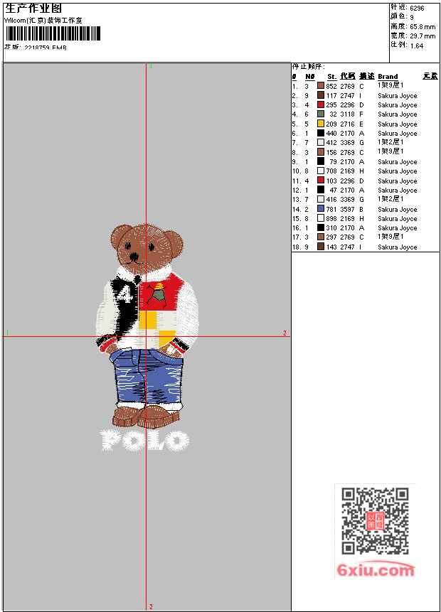 POLO小熊 EMB花版参数: 大小:81.00 KB / 尺寸:30*66[毫米] / 针数:6296针 / 线色:9 / 格式:EMB / 版本:e4.2 版带文件需绣花软件方可打开,可配色打印导出各种格式或直接上机绣。如无绣花软件可下载1:1模拟效果图。 PNG图片信息:大小:0.2(MB) /图宽*高:277x578(像素) EMB下载 1:1图下载 收藏本图 关闭 相关花版: 天鹅 心型 polo 皇冠 polo polo 盾牌徽章 棉服徽章 盾牌标 皇冠 衬衫标 麦穗 polo polo polo 老鹰 古驰字母 古驰 飞机 降落伞 polo 蝴蝶 虎头 卫衣熊猫 麦穗 猪头标 插针马头 马 领 嘴唇