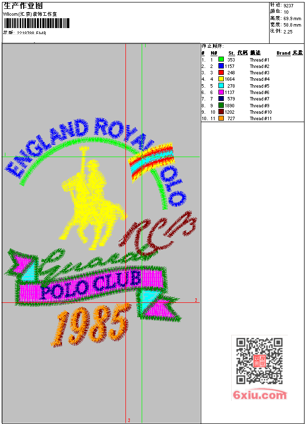 polo EMB花版参数: 大小:108.50 KB / 尺寸:59*70[毫米] / 针数:9237针 / 线色:10 / 格式:EMB / 版本:e4.2 版带文件需绣花软件方可打开,可配色打印导出各种格式或直接上机绣。如无绣花软件可下载1:1模拟效果图。 PNG图片信息:大小:0.1(MB) /图宽*高:223x265(像素) EMB下载 1:1图下载 收藏本图 关闭 相关花版: polo polo polo polo 章标 章标 章标 章标 野猪 章仔 孔雀花 服装花 小鸟 金鱼 花朵 玫瑰花 玫瑰花 开心 狗 史努比 厨师 狗 史努比 狗 史努比 画家 鬼章仔 手掌 南瓜怪 POLO小熊 天鹅 心型 polo 皇冠 polo polo