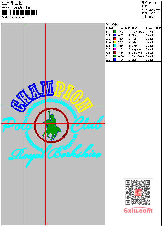 polo EMB花版参数: 大小:173.50 KB / 尺寸:240*205[毫米] / 针数:29470针 / 线色:7 / 格式:EMB / 版本:e4.2 版带文件需绣花软件方可打开,可配色打印导出各种格式或直接上机绣。如无绣花软件可下载1:1模拟效果图。 PNG图片信息:大小:0.4(MB) /图宽*高:908x774(像素) EMB下载 1:1图下载 收藏本图 关闭 相关花版: polo polo polo polo polo 章标 章标 章标 章标 野猪 章仔 孔雀花 服装花 小鸟 金鱼 花朵 玫瑰花 玫瑰花 开心 狗 史努比 厨师 狗 史努比 狗 史努比 画家 鬼章仔 手掌 南瓜怪 POLO小熊 天鹅 心型 polo 皇冠 polo