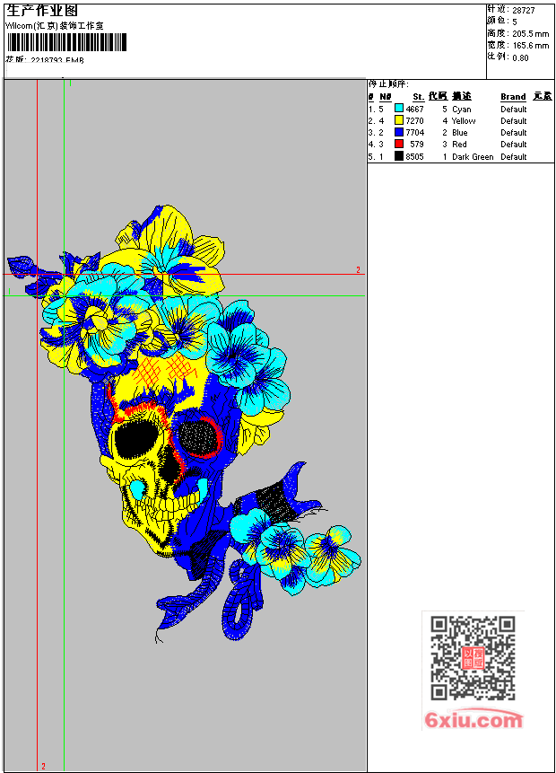 骷髅 EMB花版参数: 大小:222.50 KB / 尺寸:166*205[毫米] / 针数:28727针 / 线色:5 / 格式:EMB / 版本:e4.2 版带文件需绣花软件方可打开,可配色打印导出各种格式或直接上机绣。如无绣花软件可下载1:1模拟效果图。 PNG图片信息:大小:0.5(MB) /图宽*高:627x778(像素) EMB下载 1:1图下载 收藏本图 关闭 相关花版: 骷髅 polo polo polo polo polo polo polo 章标 章标 章标 章标 野猪 章仔 孔雀花 服装花 小鸟 金鱼 花朵 玫瑰花 玫瑰花 开心 狗 史努比 厨师 狗 史努比 狗 史努比 画家 鬼章仔 手掌 南瓜怪 POLO小熊 天鹅 心型