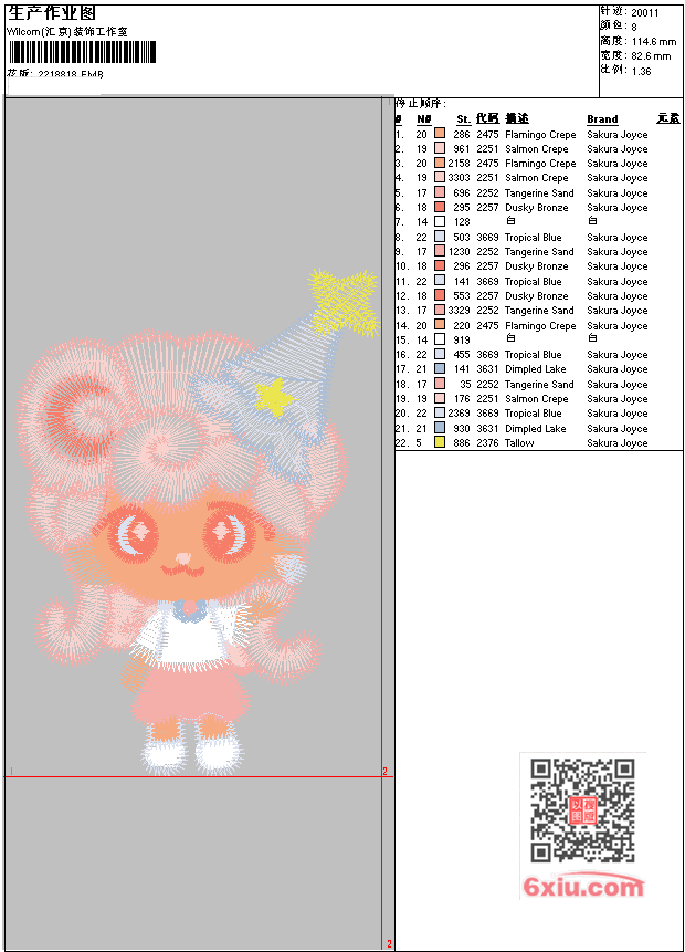 掌心粉娃娃 EMB花版参数: 大小:115.50 KB / 尺寸:83*115[毫米] / 针数:20011针 / 线色:8 / 格式:EMB / 版本:e4.2 版带文件需绣花软件方可打开,可配色打印导出各种格式或直接上机绣。如无绣花软件可下载1:1模拟效果图。 PNG图片信息:大小:0.2(MB) /图宽*高:313x434(像素) EMB下载 1:1图下载 收藏本图 关闭 相关花版: 小狗插针 乱针绣 鱼 古典花 蛇心箭 蛇心 孔雀 鸟 虾 仙鹤 骷髅 骷髅 polo polo polo polo polo polo polo 章标 章标 章标 章标 野猪 章仔 孔雀花 服装花 小鸟 金鱼 花朵 玫瑰花