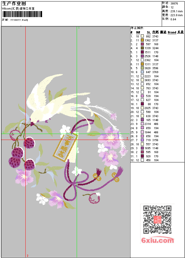 鸟 荔枝 万事顺荔 EMB花版参数: 大小:311.00 KB / 尺寸:224*239[毫米] / 针数:38876针 / 线色:12 / 格式:EMB / 版本:e4.2 版带文件需绣花软件方可打开,可配色打印导出各种格式或直接上机绣。如无绣花软件可下载1:1模拟效果图。 PNG图片信息:大小:0.6(MB) /图宽*高:847x905(像素) EMB下载 1:1图下载 收藏本图 关闭 相关花版: 简单花 蝴蝶花 贴布 熊 掌心粉娃娃 小狗插针 乱针绣 鱼 古典花 蛇心箭 蛇心 孔雀 鸟 虾 仙鹤 骷髅 骷髅 polo polo polo polo polo polo polo 章标 章标 章标 章标 野猪 章仔 孔雀花 服装花