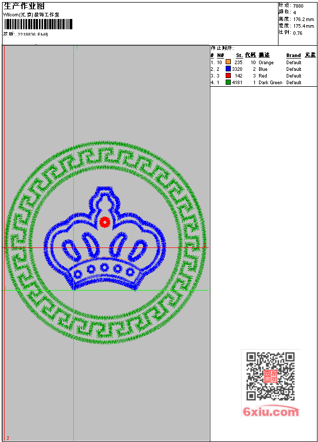 皇冠 EMB花版参数: 大小:119.50 KB / 尺寸:175*176[毫米] / 针数:7880针 / 线色:4 / 格式:EMB / 版本:e4.2 版带文件需绣花软件方可打开,可配色打印导出各种格式或直接上机绣。如无绣花软件可下载1:1模拟效果图。 PNG图片信息:大小:0.4(MB) /图宽*高:664x667(像素) EMB下载 1:1图下载 收藏本图 关闭 相关花版: 猫 狗标 羽毛 贴布女孩 鸟 翅膀 靓花 靓花 鸟 荔枝 万事顺荔 简单花 蝴蝶花 贴布 熊 掌心粉娃娃 小狗插针 乱针绣 鱼 古典花 蛇心箭 蛇心 孔雀 鸟 虾 仙鹤 骷髅 骷髅 polo polo polo polo polo polo