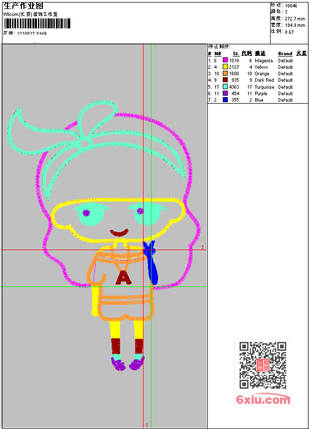 贴布女孩 EMB花版参数: 大小:125.00 KB / 尺寸:195*273[毫米] / 针数:10846针 / 线色:7 / 格式:EMB / 版本:e4.2 版带文件需绣花软件方可打开,可配色打印导出各种格式或直接上机绣。如无绣花软件可下载1:1模拟效果图。 PNG图片信息:大小:0.3(MB) /图宽*高:738x1032(像素) EMB下载 1:1图下载 收藏本图 关闭 相关花版: 皇冠 猫 狗标 羽毛 贴布女孩 鸟 翅膀 靓花 靓花 鸟 荔枝 万事顺荔 简单花 蝴蝶花 贴布 熊 掌心粉娃娃 小狗插针 乱针绣 鱼 古典花 蛇心箭 蛇心 孔雀 鸟 虾 仙鹤 骷髅 骷髅 polo polo polo polo polo