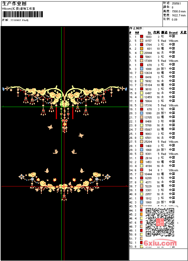 满绣大花 EMB花版参数: 大小:1.88 MB / 尺寸:1623*1500[毫米] / 针数:359561针 / 线色:8 / 格式:EMB / 版本:e4.2 版带文件需绣花软件方可打开,可配色打印导出各种格式或直接上机绣。如无绣花软件可下载1:1模拟效果图。 PNG图片信息:大小:1.2(MB) /图宽*高:6138x5674(像素) EMB下载 1:1图下载 收藏本图 关闭 相关花版: 蝴蝶花 另一半可复制 汉服 腰花 汉服 莲花 汉服 吊带花 大花 另一半可复制 汉服 字母- sunset love 马头 十字绣民族挑花 手动针 章 花边 小猪佩奇 骷髅头 李宁 雪花 五角星珠片绣 熊毛巾绣 苹果毛巾绣 polo polo 小花 汉服 山羊孔雀 汉服 落花蝴蝶 汉服 花山背景墙 云肩 汉服裙子裙头 汉服裙子飘带 汉服飘带 孔雀 仙人掌 蝴蝶