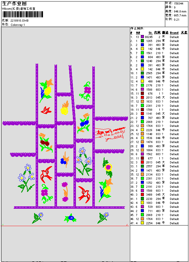 裤子 EMB花版参数: 大小:881.00 KB / 尺寸:666*847[毫米] / 针数:158344针 / 线色:9 / 格式:EMB / 版本:e4.2 版带文件需绣花软件方可打开,可配色打印导出各种格式或直接上机绣。如无绣花软件可下载1:1模拟效果图。 模拟图片信息:大小:0.8(MB) /图宽*高:2519x3204(像素) EMB下载 1:1图下载 收藏本图 关闭 相关花版: 前幅 前幅- 字母 前幅字母 山峰 穗子 系带小花 裙摆大花 一整条 满绣大花 蝴蝶花 另一半可复制 汉服 腰花 汉服 莲花 汉服 吊带花 大花 另一半可复制 汉服 字母- sunset love 马头 十字绣民族挑花 手动针 章 花边 小猪佩奇 骷髅头 李宁 雪花 五角星珠片绣 熊毛巾绣 苹果毛巾绣 polo polo 小花 汉服 山羊孔雀 汉服 落花蝴蝶 汉服