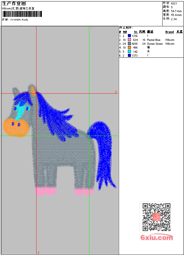 马 EMB花版参数: 大小:86.00 KB / 尺寸:55*55[毫米] / 针数:8221针 / 线色:5 / 格式:EMB / 版本:e4.2 版带文件需绣花软件方可打开,可配色打印导出各种格式或直接上机绣。如无绣花软件可下载1:1模拟效果图。 模拟图片信息:大小:0.1(MB) /图宽*高:210x207(像素) EMB下载 1:1图下载 收藏本图 关闭 相关花版: 马 美人马 兔子草莓 未来 future 武术 卡通小羊 卡通小汽车 抱枕 靓花 被子花朵 靓花 绣花被子 靓花 枕套 圆 靓花 链条NY 6厘米银渐层小猫头 前花 裤子 前幅 前幅- 字母 前幅字母 山峰 穗子 系带小花 裙摆大花 一整条 满绣大花 蝴蝶花 另一半可复制 汉服 腰花 汉服 莲花 汉服 吊带花 大花 另一半可复制 汉服 字母- sunset love 马头