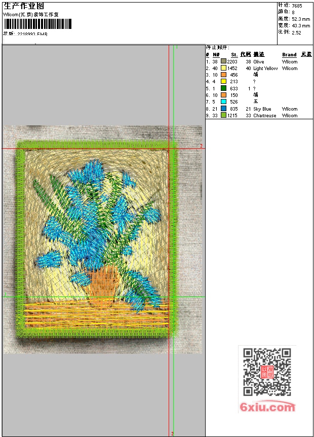 迷你名画 梵高 EMB花版参数: 大小:434.50 KB / 尺寸:43*52[毫米] / 针数:7685针 / 线色:8 / 格式:EMB / 版本:e4.2 版带文件需绣花软件方可打开,可配色打印导出各种格式或直接上机绣。如无绣花软件可下载1:1模拟效果图。 模拟图片信息:大小:0.1(MB) /图宽*高:164x198(像素) EMB下载 1:1图下载 收藏本图 关闭 相关花版: 迷你名画 梵高 迷你名画 梵高 马 马 马 马 马 马 美人马 兔子草莓 未来 future 武术 卡通小羊 卡通小汽车 抱枕 靓花 被子花朵 靓花 绣花被子 靓花 枕套 圆 靓花 链条NY 6厘米银渐层小猫头 前花 裤子 前幅 前幅- 字母 前幅字母 山峰 穗子 系带小花 裙摆大花 一整条 满绣大花