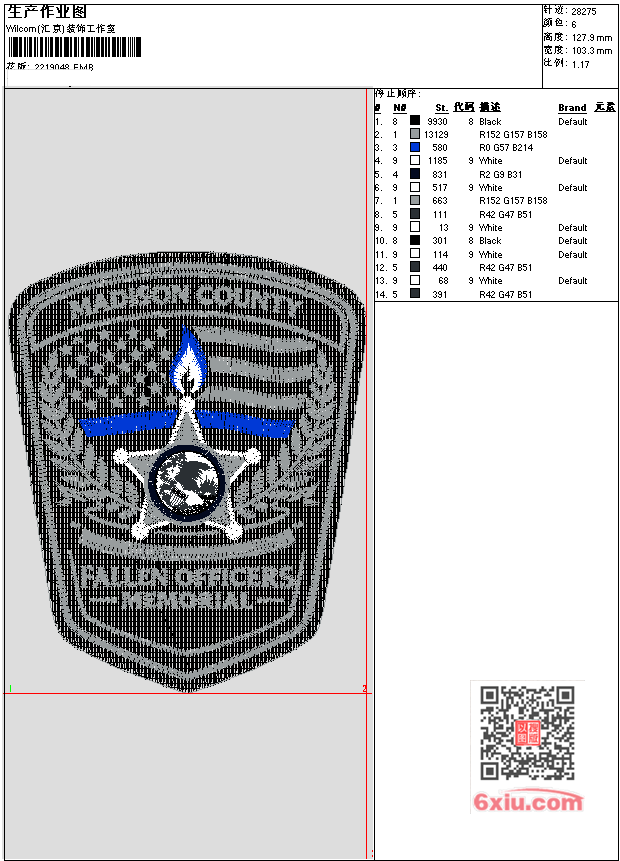 章 MADISON FALLEN 老鹰 EMB花版参数: 大小:187.00 KB / 尺寸:103*128[毫米] / 针数:28275针 / 线色:6 / 格式:EMB / 版本:e4.2 版带文件需绣花软件方可打开,可配色打印导出各种格式或直接上机绣。如无绣花软件可下载1:1模拟效果图。 模拟图片信息:大小:0.1(MB) /图宽*高:391x484(像素) EMB下载 1:1图下载 收藏本图 关闭 相关花版: 西部牛仔 骑马 西部牛仔 马 骑马 polo 骑马 Dust TO 西部牛仔 马 人 三毛 MICHIGAN AUTISM 鹿-章 BULISEYE 靶心 AUTISM VIRGINIA 狗 猫头鹰 NIGHT INDIANAPOLIS POLICE 火车 ALLABOARD AMTRAK 0303 AUSTINMOWER 老鹰-uncheck NEGOTIATOR ATLANTIC 马 独角兽 JEFFERSON POLICE DEPARTMENT BUFFALO 牛 SPACESYMP OKLAHOMA 火箭 爱心 小马 diao 小熊 熊 兔子 保罗 月亮熊 企鹅 保罗 花 保罗 polo 小马 爱心 蛋糕 铃铛