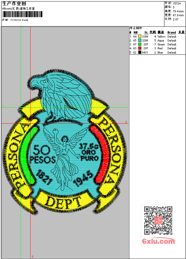 章仔 鹰 EMB花版参数: 大小:130.50 KB / 尺寸:68*79[毫米] / 针数:15724针 / 线色:6 / 格式:EMB / 版本:e4.2 版带文件需绣花软件方可打开,可配色打印导出各种格式或直接上机绣。如无绣花软件可下载1:1模拟效果图。 模拟图片信息:大小:0.1(MB) /图宽*高:257x301(像素) EMB下载 1:1图下载 收藏本图 关闭 相关花版: 鳄鱼 玫瑰 马 蝴蝶 33CM盘带棉格子布绣 章仔 章仔 章仔 章仔 章仔 章仔 被套 蓓蕾 B 校服 被套 被套 被套 小太阳 亮片 小猫 匹绣 米老鼠 拱桥绣 汉服 条码 寺 佛 佛 橘子 马 蛇 绳绣 桃子