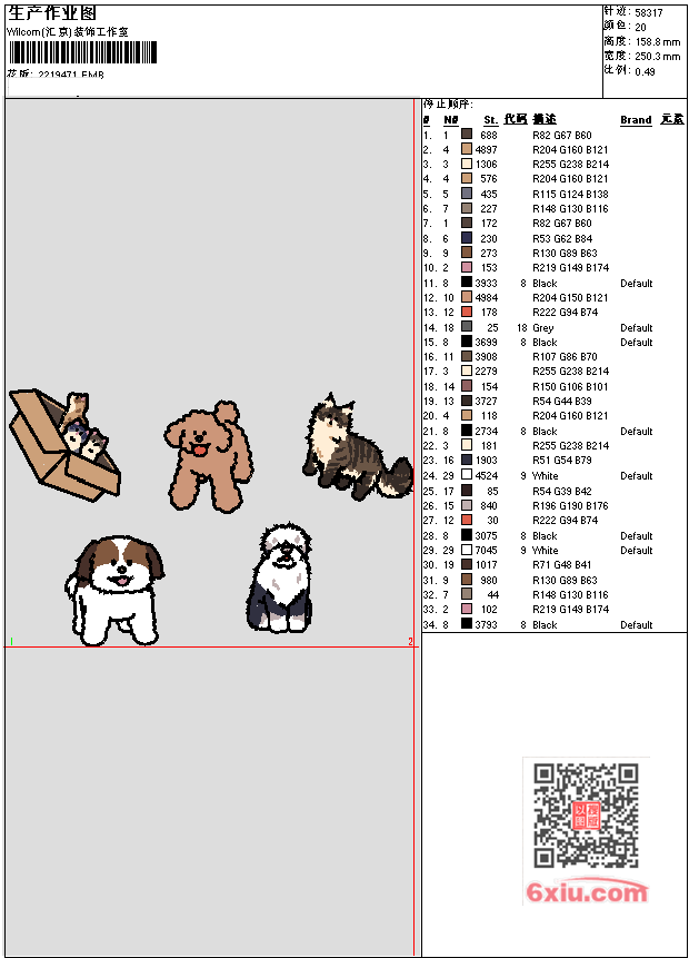 狗 猫 EMB花版参数: 大小:338.00 KB / 尺寸:250*159[毫米] / 针数:58317针 / 线色:20 / 格式:EMB / 版本:e4.2 版带文件需绣花软件方可打开,可配色打印导出各种格式或直接上机绣。如无绣花软件可下载1:1模拟效果图。 模拟图片信息:大小:0.1(MB) /图宽*高:947x601(像素) EMB下载 1:1图下载 收藏本图 关闭 相关花版: 狗 盾 圆 VIP SGT SHANG 卡通 女孩 橄榄 狗 眼镜 女生 可乐 薯条 麦当劳 MC 狗 哈巴狗 角 生态成都 天使 恶魔 魔鬼 女生 女孩 动漫 花 少女 猫 蝴蝶 翅膀 脱冷夫機车 老虎 ALB 火柴人 猫 猫 通化老男孩 海盗 猫 婺剑 马里奥 游戏 动漫女孩 AK47 步枪 DAC 机车 骷髅 龙- 猫女 马赛克女孩 狮标 NTU 星河战士 海豹 SAVETHE 章仔 女神 羊头