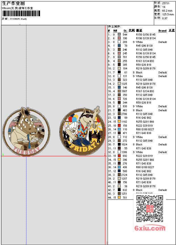- 版带文件需绣花软件方可打开,可配色打印导出各种格式或直接上机绣。如无绣花软件可下载1:1模拟效果图。