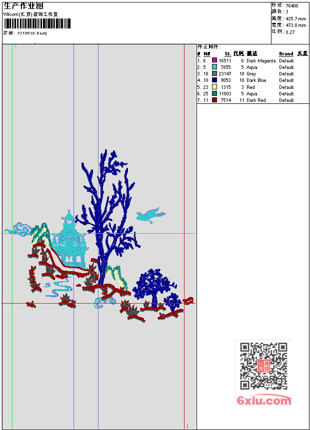 - EMB花版参数: 大小:455.00 KB / 尺寸:473*436[毫米] / 针数:76400针 / 线色:7 / 格式:EMB / 版本:e4.2
