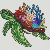 海龟和珊瑚 手动针转的emb