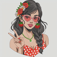 戴着心形眼镜的花仙子女孩——时尚 手动针