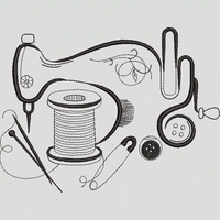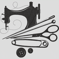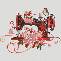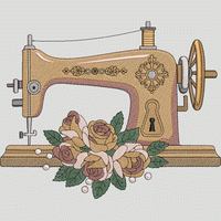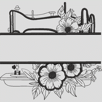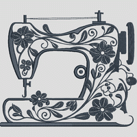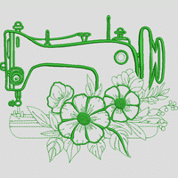 复古缝纫机与鲜花——轮廓 手动针转的emb