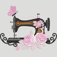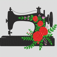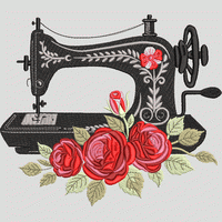 复古缝纫机 – 花卉玫瑰 手动针转的emb