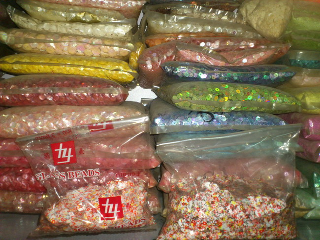 本公司本着真诚.平等.互利的原则发展业务.现生产和销售的产品有.耐高温.环保七彩珠片.亚光珠片.印花珠片,皮革片.植毛珠片.玻璃彩珠.压克力胶石..水钻.泡珠.纱布.退色粉..无味火水.等工艺珠绣辅料.电脑绣花辅料.广泛用于服装.手袋.鞋帽.头饰.圣诞品.欢迎来函来电洽淡.来料加工。