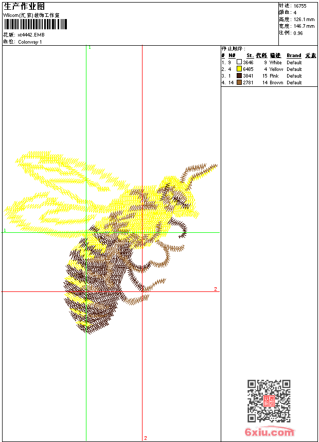 - emb花版参数: 大小:71.00 KB / 尺寸:147*126[毫米] / 针数:16755针 / 线色:4 / 格式:emb / 版本:9