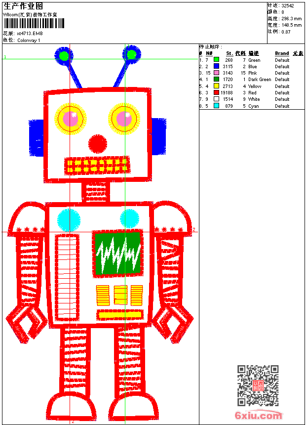 卡通机器人 点此上传花版兑乐绣币/现金 emb花版参数: 大小:114.00 KB / 尺寸:149*296[毫米] / 针数:32542针 / 线色:8 / 格式:emb / 版本:9 版带文件需绣花软件方可打开,可配色打印导出各种格式或直接上机绣。如无绣花软件可下载1:1模拟效果图。 PNG图片信息:大小:0.5(MB) /图宽*高:562x1121(像素) emb下载 1:1图下载 关闭 相似花版: 卡通海绵宝宝 毛巾绣猫 亮片猫头鹰 花朵十字绣 蝴蝶领子 小猫 中国风古典花朵 抽象的雕孔 卡通小女孩 梅花 靓花 靓花 小鸡皇冠 梅花 梅花 卡通兔子 蝴蝶 蝴蝶领子 玫瑰花 蝴蝶 上一个花样:领着 下一个花样:卡通海绵宝宝