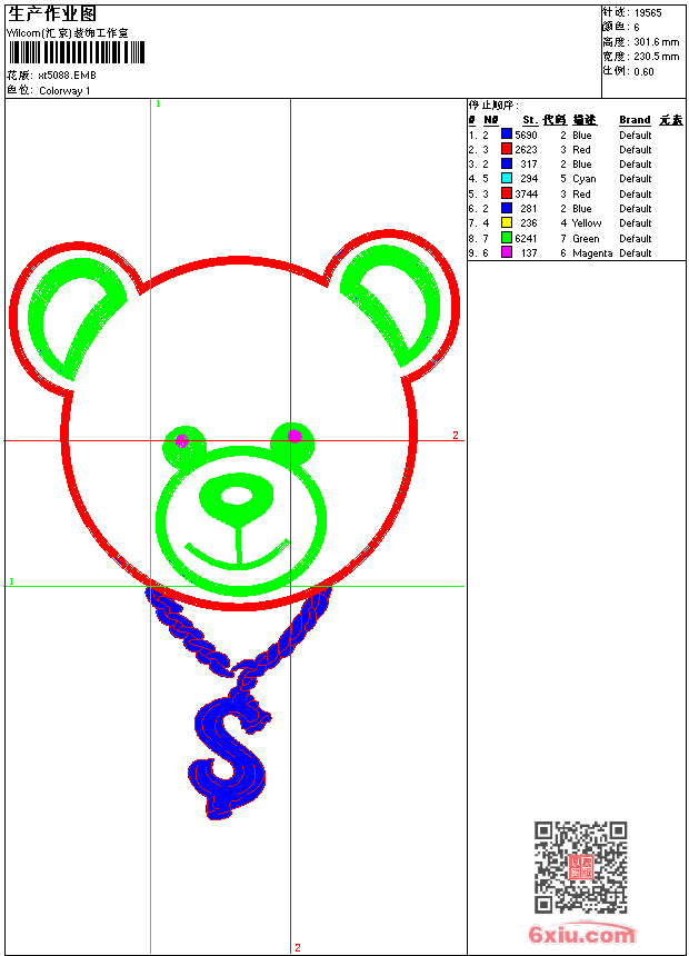 小熊 点此上传花版兑乐绣币/现金 emb花版参数: 大小:86.00 KB / 尺寸:230*302[毫米] / 针数:19565针 / 线色:6 / 格式:emb / 版本:9 版带文件需绣花软件方可打开,可配色打印导出各种格式或直接上机绣。如无绣花软件可下载1:1模拟效果图。 PNG图片信息:大小:0.4(MB) /图宽*高:872x1141(像素) emb下载 1:1图下载 关闭 相似花版: 抽象的数学符号 奔跑的马 卡通豹子 梅花鹿 小猪毛巾绣 毛巾系小猪 亮片唐老鸭 毛巾绣卡通史努比 毛巾绣卡通 毛巾绣美女头像 毛巾绣喝茶的美女 毛巾绣四眼天鸡 小熊 大嘴猴 老虎头 皇冠 梅花鹿 花盆里种的花朵 巴黎铁塔 标志男装球队狗斗牛犬 上一个花样:麻将绣企鹅 下一个花样:抽象的数学符号
