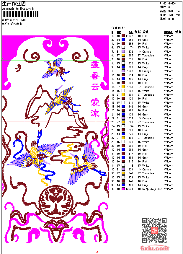 仙鹤 点此上传花版兑乐绣币/现金 emb花版参数: 大小:277.50 KB / 尺寸:180*349[毫米] / 针数:44406针 / 线色:6 / 格式:emb / 版本:9 版带文件需绣花软件方可打开,可配色打印导出各种格式或直接上机绣。如无绣花软件可下载1:1模拟效果图。 PNG图片信息:大小:0.8(MB) /图宽*高:680x1320(像素) emb下载 1:1图下载 关闭 相似花版: 靓花 丹顶鹤 蝴蝶 鸟语花香梅花精品背景墙装饰 杯子蘑菇 靓花 李白骑马精品人物 荷兰郁金香 梅花鹿 蝴蝶 小猫 小鸟 老鹰 骷髅 徽章标志男装 猫头 两只小鸟 卡通蜡笔小新 靓话 靓花 上一个花样:靓花 下一个花样:靓花