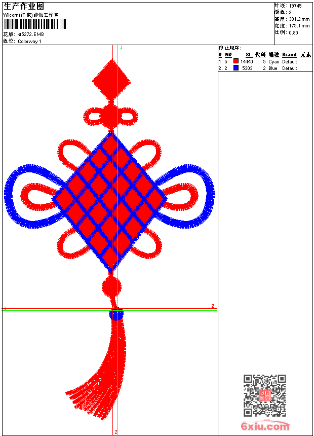 中国风中国结吉祥图案 上传花版得乐绣币/现金 emb花版参数: 大小:59.50 KB / 尺寸:175*301[毫米] / 针数:19745针 / 线色:2 / 格式:emb / 版本:9 版带文件需绣花软件方可打开,可配色打印导出各种格式或直接上机绣。如无绣花软件可下载1:1模拟效果图。 PNG图片信息:大小:0.4(MB) /图宽*高:663x1140(像素) emb下载 1:1图下载 收藏本图 关闭 相似花版: 靓花和大鲤鱼 多色水溶衣领 大嘴猴 徽章标志男装 徽章标志男装 国旗 美女图 骷髅 花边 猫头鹰 卡通女孩 小猫 鲤鱼 靓花 基督教 大鲤鱼 叶子 梅花鹿 汽车标志长城哈佛 汽车标志大众 上一个花样:多色水溶衣领 下一个花样:靓花和大鲤鱼