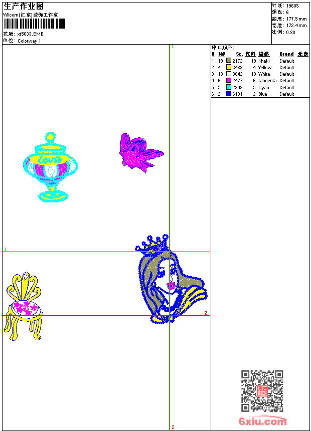 白雪公主 点此上传花版兑乐绣币/现金 emb花版参数: 大小:125.50 KB / 尺寸:172*178[毫米] / 针数:19605针 / 线色:6 / 格式:emb / 版本:9 版带文件需绣花软件方可打开,可配色打印导出各种格式或直接上机绣。如无绣花软件可下载1:1模拟效果图。 PNG图片信息:大小:0.2(MB) /图宽*高:653x672(像素) emb下载 1:1图下载 关闭 相似花版: 耳机 毛巾绣耳机 字母男装徽章标志 字母 小狗 小鸟 普陀山南海观音护身符一生平安 宇宙飞船 火箭卫星 几个男人 范思哲 简单花朵 蝴蝶花朵 兔子 卡通熊猫 老鹰 老虎头 小狗 条码 茶杯青花瓷 上一个花样:童花世界魔镜 下一个花样:耳机