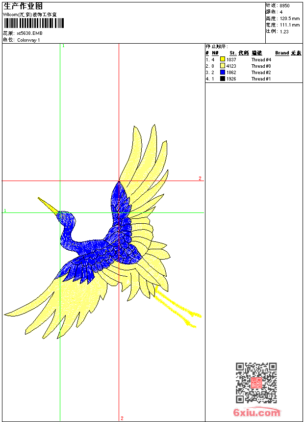 丹顶鹤仙鹤 点此上传花版兑乐绣币/现金 emb花版参数: 大小:63.00 KB / 尺寸:111*121[毫米] / 针数:8950针 / 线色:4 / 格式:emb / 版本:9 版带文件需绣花软件方可打开,可配色打印导出各种格式或直接上机绣。如无绣花软件可下载1:1模拟效果图。 PNG图片信息:大小:0.1(MB) /图宽*高:421x456(像素) emb下载 1:1图下载 关闭 相似花版: 小狗 苍蝇蜜蜂 小猫 童花世界魔镜 白雪公主 耳机 毛巾绣耳机 字母男装徽章标志 字母 小狗 小鸟 普陀山南海观音护身符一生平安 宇宙飞船 火箭卫星 几个男人 范思哲 简单花朵 蝴蝶花朵 兔子 卡通熊猫 上一个花样:徽章标志梅花鹿 下一个花样:小狗