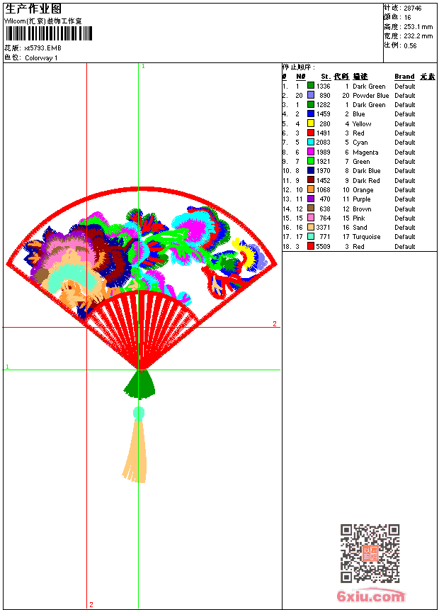靓花扇子中国风 点此上传花版兑乐绣币/现金 emb花版参数: 大小:163.00 KB / 尺寸:232*253[毫米] / 针数:28746针 / 线色:16 / 格式:emb / 版本:9 版带文件需绣花软件方可打开,可配色打印导出各种格式或直接上机绣。如无绣花软件可下载1:1模拟效果图。 PNG图片信息:大小:0.6(MB) /图宽*高:879x958(像素) emb下载 1:1图下载 关闭 相似花版: 小鸟 靓花 靓花 仙鹤梅花 条码领子 小鸟 靓花 靓花 靓花 靓花 中国风吉祥 中国风鲤鱼靓花 蝴蝶 简单花朵 卡通鳄鱼 靓花中国风传统鲤鱼吉祥 靓花中国风传统 中国风传统图案 衣领 少数民族挑水的美女 上一个花样:鸳鸯荷花中国风 下一个花样:小鸟